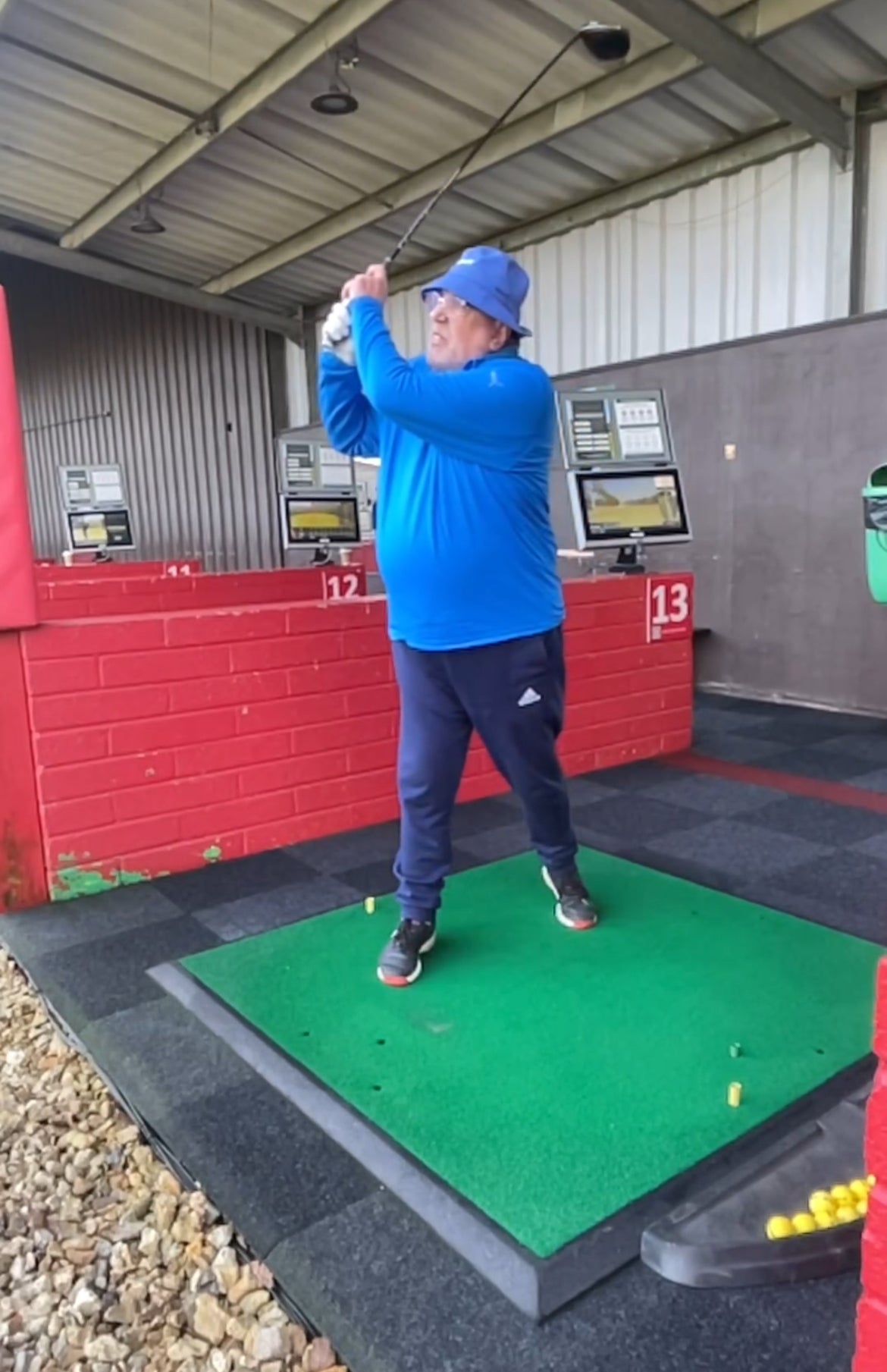 Regularly likes to hits balls at me when I'm setting him a new challenge on the driving range.